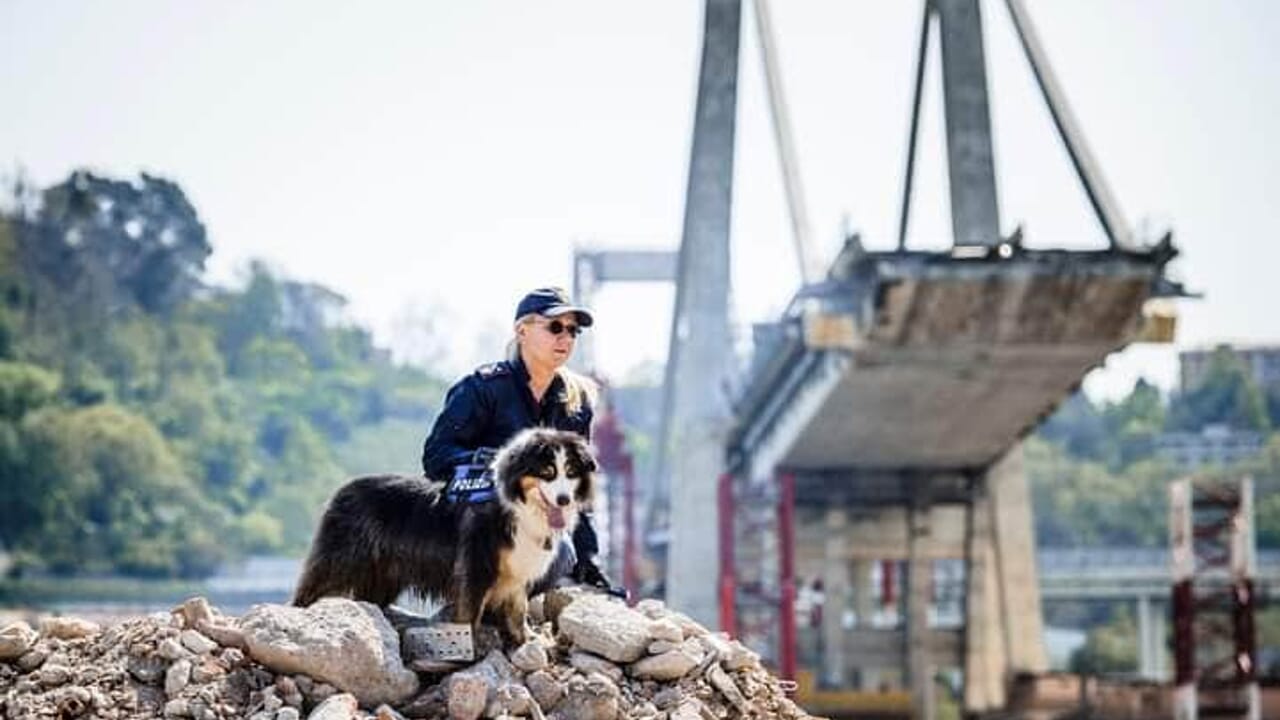 Night Spirit era un bellissimo pastore australiano, impettito con la sua pettorina con su scritto ‘Polizia’ e molti lo ricordano frugare tra le macerie di Ponte Morandi impegnato a cercare sopravvissuti a quella immane tragedia.